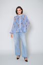 Add a touch of delicate elegance to your everyday wardrobe with this Lace-Trimmed Floral Printed Blouse. Designed with a soft floral print, this blouse features beautiful lace detailing along the sleeves and front, creating a refined and feminine look. The lightweight fabric offers a graceful drape, while the tie-up neckline adds a stylish finishing touch. Perfect for office wear, casual outings, or special day events, this blouse pairs effortlessly with trousers or denim.